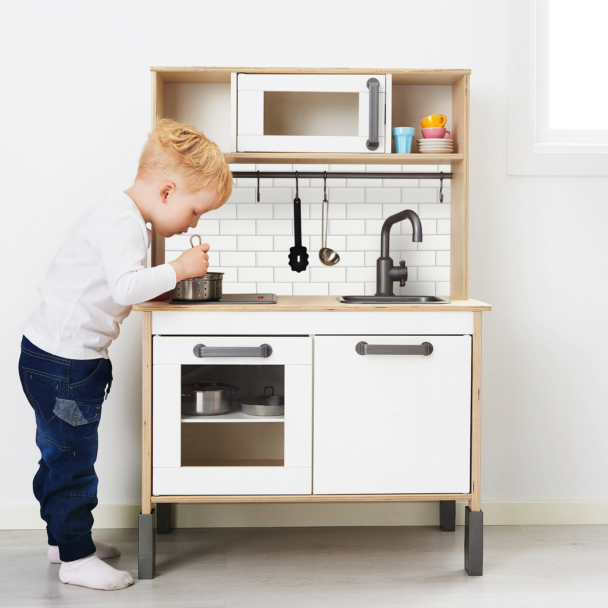 Kinderkeuken ikea duktig Sticker Set alle knoppen en kaststicker 3. ADD A BACKSPLASH. The Duktig comes with a backing board behind the microwave and shelf sections, however the backsplash is left hollow. To make it look more realistic, attach a backsplash using some MDF board and printed wallpaper, vinyl contact paper or stick and peel tiles.