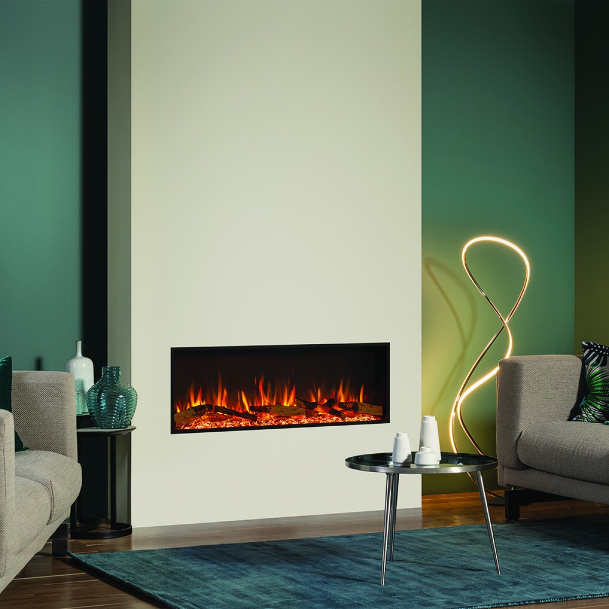 Gazco eStudio 105R Electric Fire & FREE Mood Light Kit The Fireplace Company The Gazco e Studio 105R Inset Electric Fire is capable of creating the perfect ambience at just the touch of a button, with or without the heat. The e Studio 105R is a favourite for feature media wall installations and is available with the optional Mood Lighting System. Chromalight® Immersive LED system Optional LED Mood Lighting System