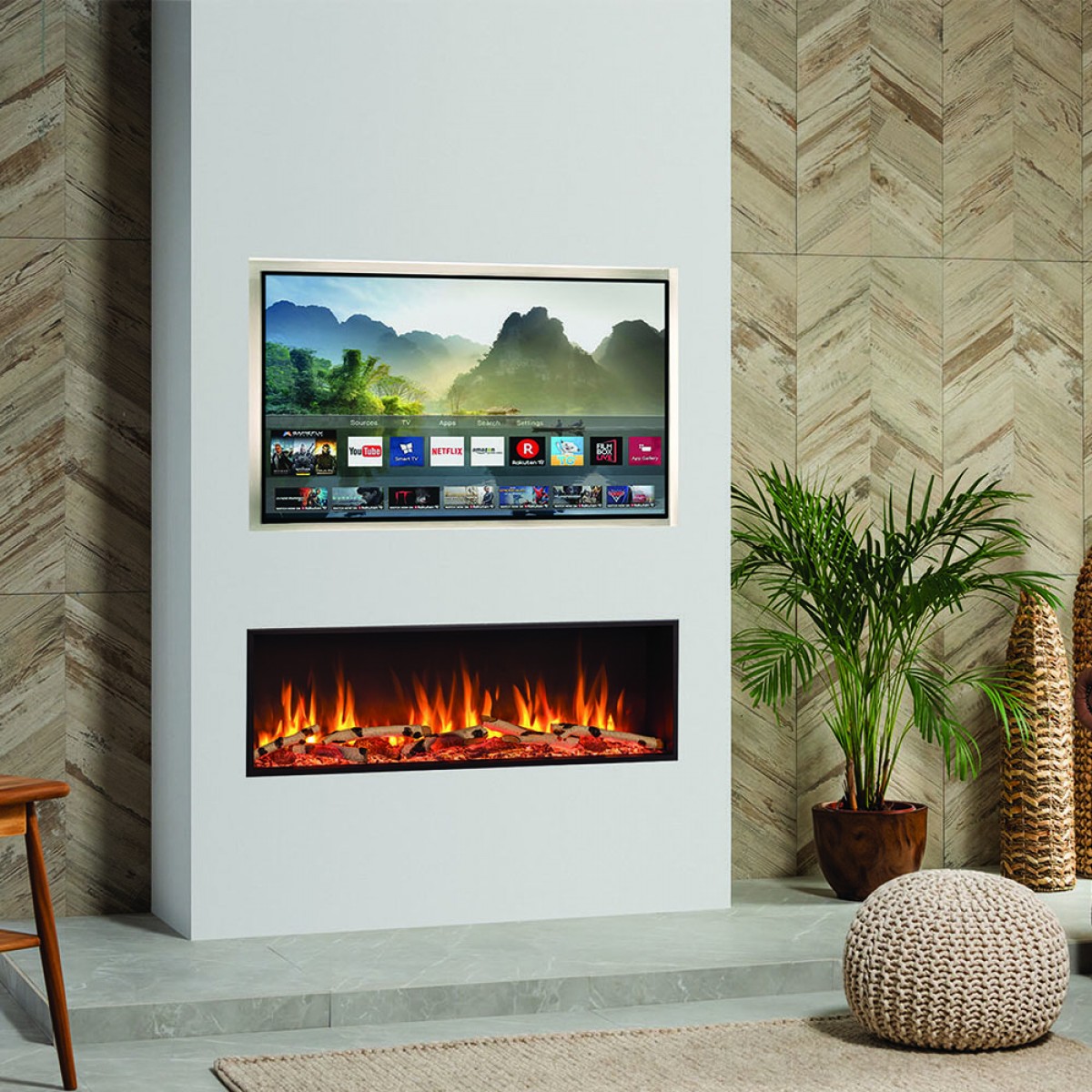Gazco eStudio 105R Inset Electric Fire Flames.co.uk July 9, 2021 We moved into a new house and the living room chimney breast was fitted with a cheap looking fireplace, surround with plastic effect coal. It intruded into the room and we very rarely used it. We saw in the Gazco range an electric fire that was not only wall mounted but could be inserted into the chimney breast.